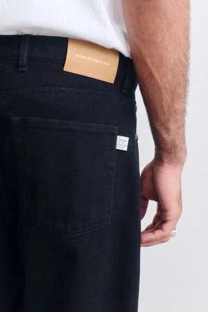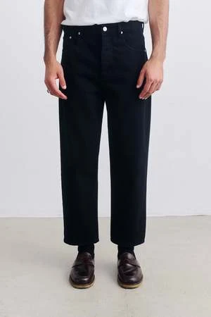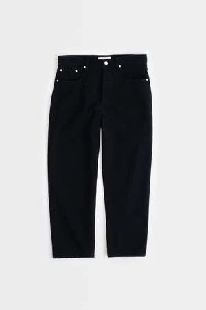 Made to endure, 5 pocket brushed black denim jeans come with wide and slightly cropped legs, a button fly, patch pockets in the back and our signature leather tag. This piece has been cut from 100% Portuguese cotton.