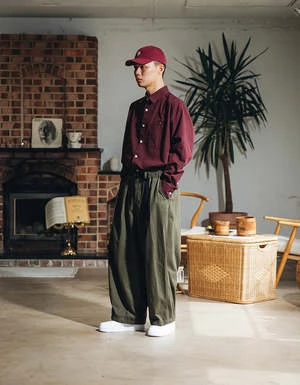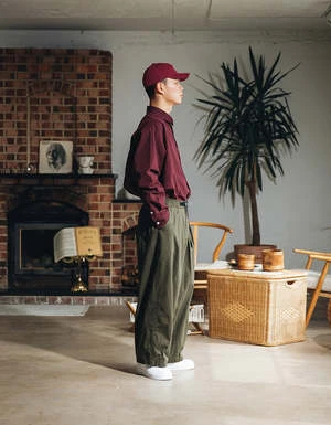 This is a wearable belted balloon pants with basic elements such as fabrics