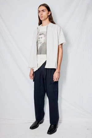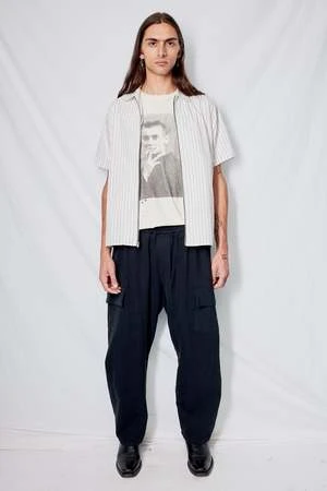 Black Denim Easy Cargo Pant from Assembly New York. Elastic waist relaxed cargo pant in overdye denim.