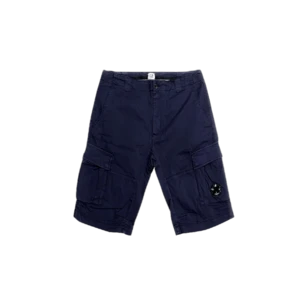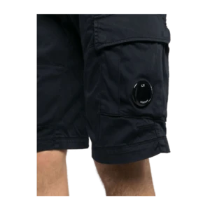 – Lens-detail cotton cargo shorts from C.P. Company featuring navy blue, cotton, signature Lens detail, logo patch to the side, elasticated waistband, two side inset pockets, two side cargo pockets and above-knee length. This item may not be on sale in France, UK, Italy, Belgium and Switzerland.