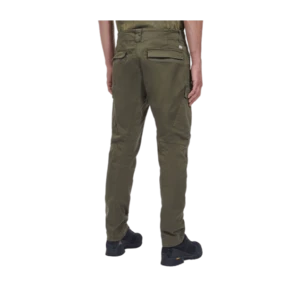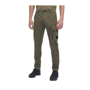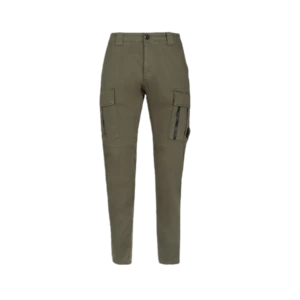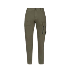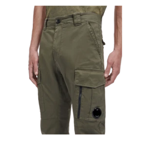 Functional loose-fit cargo trousers with belt loops, button and covered zip fastening, and front slant pockets. They also feature two back pockets and two cargo-style pockets with flap and CP Company lens. The lightweight stretch sateen matte cotton fabric they’re made from is durable and offers a soft fit. Garment dyeing gives greater depth and chromatic intensity.