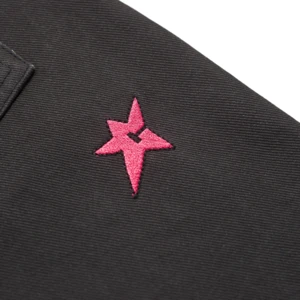 100% screenprinted pants. Started off as white, screenprinted to black. Ages like fine swine. Each piece unique