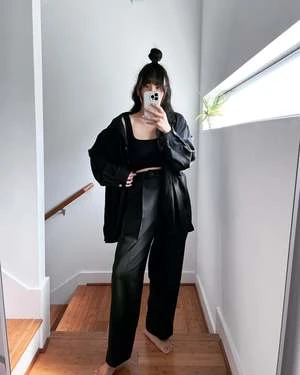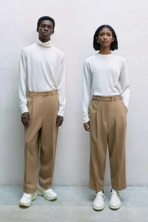 The Tailoring Masculine Pants are timeless modernity trousers, designed to be worn year round. Made from high quality fabric with a loose fit masculine shape. They have an elasticated waistband on the back, zip and button closure, finished with front and back welt pockets and turn up cuffs. It’s the uniform everybody needs in their closet.