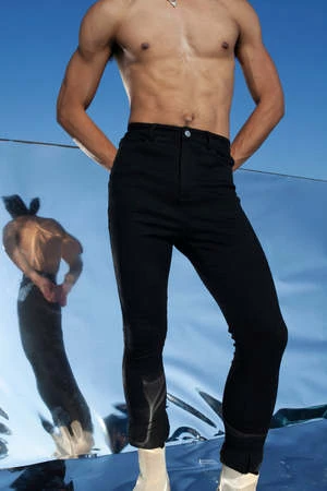 The Essential High-Waisted Skinny Jeans are our creative take on the staple clothing item and a must-have for your wardrobe. In a classic and versatile black colorway, the jeans are high-stretch yet form-fitting with a high-rise to revolutionize men’s proportions. Your ultimate everyday jeans that are comfortable, minimal, and with mindful details. Featuring belt loops, a front zip fly, a five-pocket styling, and our logo embroidery on the back left pocket.