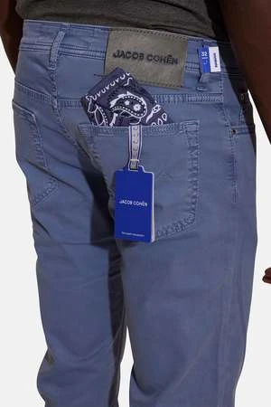 – Extra Details: Stainless Steel Hidden Button Fly w/ Jacob Cohen Signature Buttons. J Insignia On Right Pocket. Tonal Stitching w/ tonal Belt Prong Loop Above The Fly