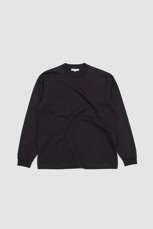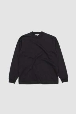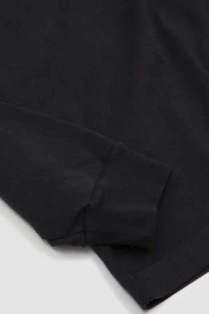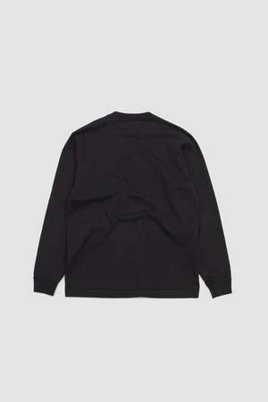 Heavyweight long sleeve t-shirt utilizes our 10oz jersey with a dense and stiff feel. Minor drop shoulder with a boxy fit. Double needle coverstitch runs shoulder to shoulder eliminating the use of taping and reducing bulk. Garment dyed.