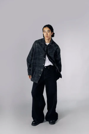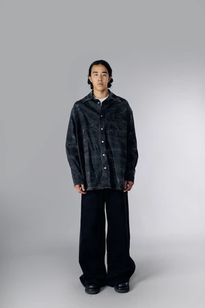 Denim shirt with creased effect treatment