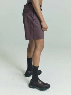 Technical taffeta shorts in beige. Logo embroidered in purple at front leg.