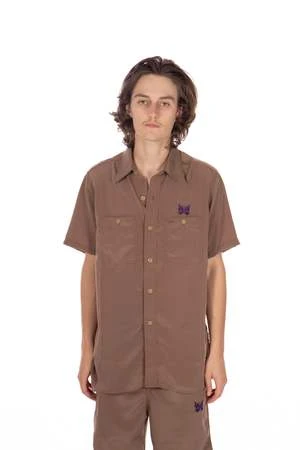A short-sleeved shirt made from a polyester material with a unique drape. While having the details of the work shirt, it also has a sporty atmosphere due to the use of light materials. With a simple design, it will be useful in various scenes throughout the spring and summer.