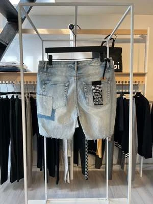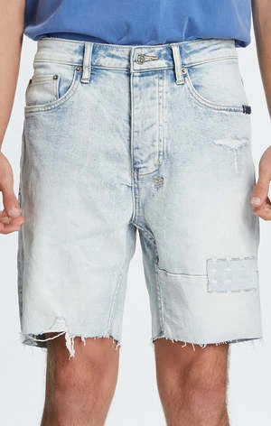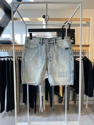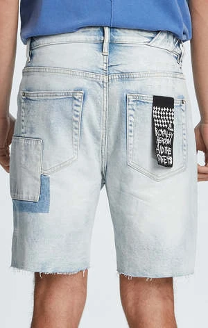 The Chopper Short 2 Tone is made from premium European comfort stretch denim featured in a light faded wash. This style is a slim fit, mid rise waist, above the knee length short deatiled with a front contrast panel and patch detail, raw hem, light grinding and Ksubi branding.