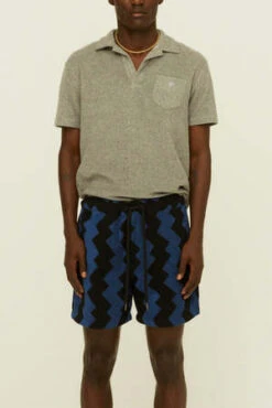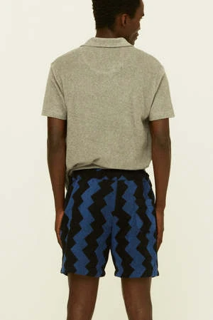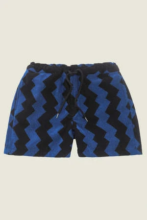 With a dark blue background and black zigzags, the Galaxy Zig Cuba terry shorts are crafted in a 100% cotton heavyweight jacquard-woven terrycloth. Complemented with two side pockets and one back pocket, an elastic waist with a tunneled drawstring the shorts are made of breathable material.