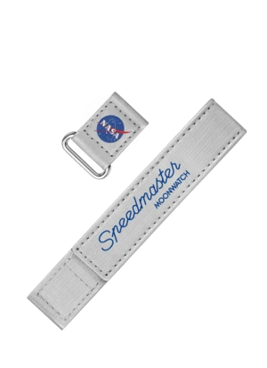 2-piece grey Speedmaster Moonwatch VELCRO strap with NASA meatball and Speedmaster logos on the front, OMEGA logo on the back