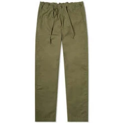 These New Yorker Pants by Orslow are built in a 100% cotton ripstop fabric and comes with a slightly tapered fit. They have three pockets, a zipped fly and an adjustable drawstring waist. The back-right features small woven brand label.