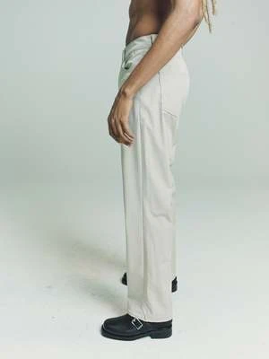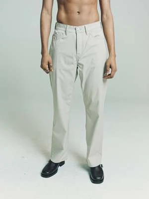 Our Formal Cut in Dusty White Muted Scuba. Produced in a technical a Italian polyamide, polyester and elastane blend fabric, the mens Formal Cut has a relaxed fit, with a slight taper and features five pockets and a button fly.