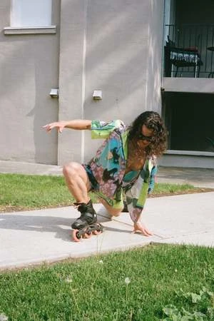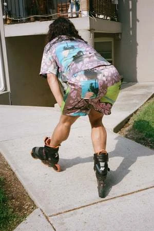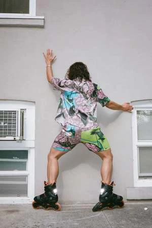 Dylan is 6’0″ and wears size medium/large with the Ruby Shirt and Bower Duke Slip in Lavender Animal.
