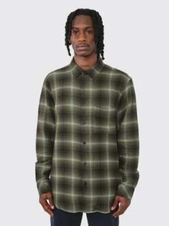 Tailored long-sleeve top featuring a sharp collar and breast pocket. Pleated back yoke seam cut on a bias and secured with button closures at centre-front and cuffs. Crafted from a waffle texture fabric of 100% organic cotton.