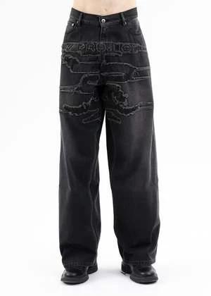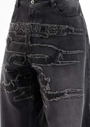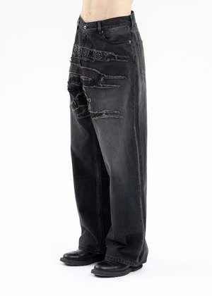 ‘Paris’ Best’ patch jeans in black, from Y-Project. Relaxed paneled construction with large distressed patchwork detailing across the front face. Antiqued silver-tone hardware. Five-pocket styling. Finished with tonal stitching and straight cuffs.